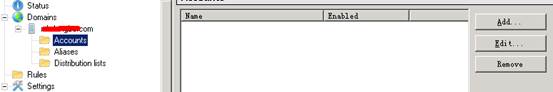 回到Domain選項下,選擇Accounts->Add,添加一個新賬號。