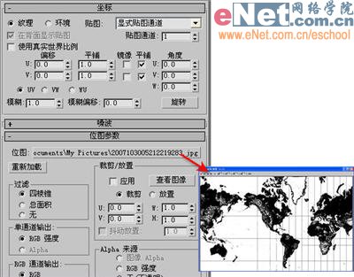 1、點擊工具欄上的“材質編輯器”按鈕,打開其面板,選擇第一個樣球,打開“貼圖”卷展欄,選中“反射”項,修改其值為50,并點擊其后的“none”按鈕,打開“材質/貼圖瀏覽器”面板,選擇“新建”單選項,然后在左邊列表中雙擊“位圖”貼圖,為其指定一圖片,如圖3所示。