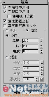 3、展開“渲染”卷展欄,勾選“在渲染中啟用”等復選項,并調整徑向厚度、邊等參數,如圖3所示,最終修改后的效果如圖4所示。