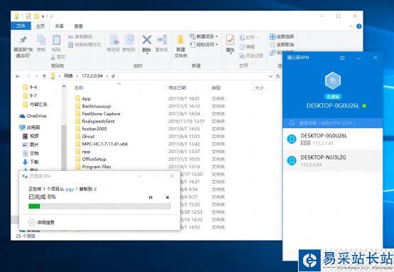 隨后,用戶在需要組網的設備中安裝蒲公英軟件,并同時用剛才注冊的Oray賬號登錄就能出現奇跡。這時,兩臺電腦就像彼此處于同一局域網內,實現了相互訪問,成功存取了共享文件。