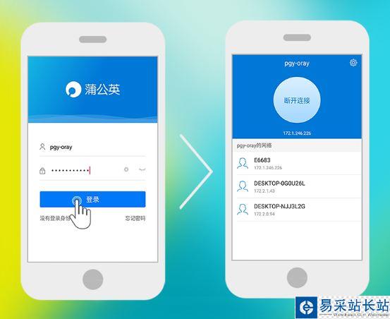 此外,蒲公英不僅可以支持桌面端,甚至滿足了移動端用戶所需,支持Android和iOS系統。而且移動端蒲公英和Windows版類似,同樣可以使用Oray賬號登錄輕松進行組網,兩步出奇跡。