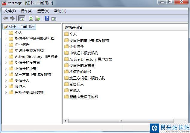打開系統證書管理器(運行=》certmgr.msc=》回車),然后出現管理器,將你之前生成的證書刪除即可。