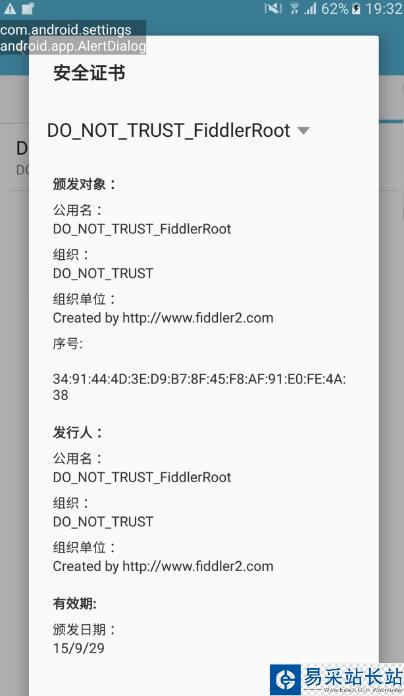 2.今天使用Fiddler抓包的時候出現了tunnel to 443的錯誤,導致抓包https的接口數據抓不到,造成這個原因就是因為,這個證書不是購買的那種信任證書,需要手機端安裝FiddlerRoot.cer證書