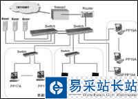 STARVF小型網吧解決方案中,通過一個24口二層交換機完成組網。前端通過ADSL路由功能聯接入互聯網,終端通過STARVF北斗系列一體機連接24口交換器,組成小型網絡。
