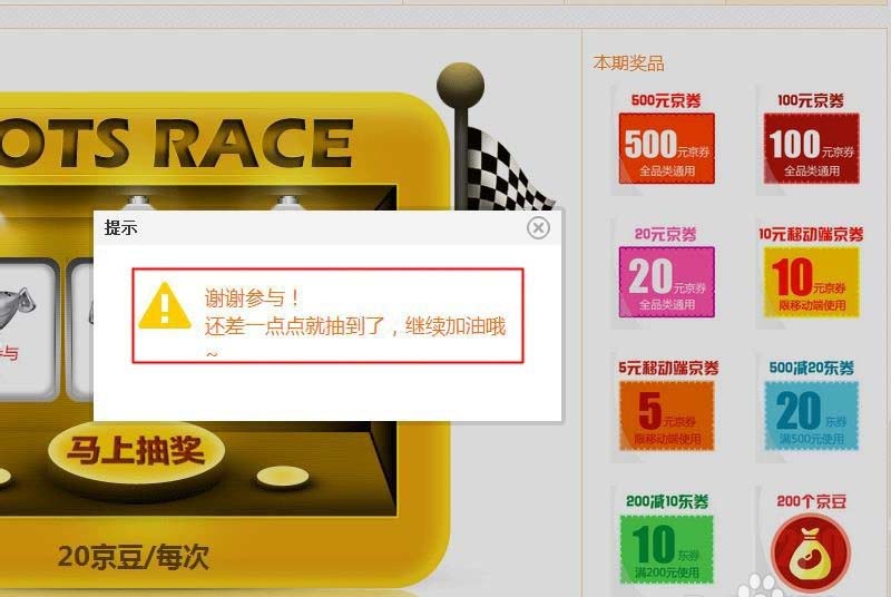 京東的京豆可以抵人民幣用,也可以抽獎。抽獎獎品不定期的改變,獎品為京券、東券、京豆等。(100京東等值于1元人民幣)