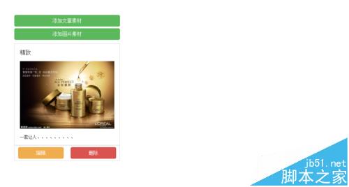 微商城素材庫,商家自定義添加文章素材和圖片素材,素材不僅可以用于微信公眾號推送,還可以用于微商城素材,一個素材,多個用途。