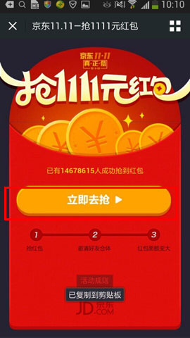 以上就是京東11.11領取活動紅包的小技巧,謝謝閱讀,希望能幫到大家,請繼續關注武林網,我們會努力分享更多優秀的文章。