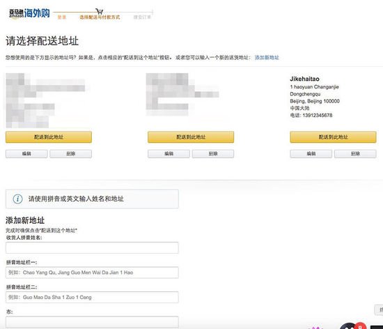 搞定之后,直接進(jìn)入到收貨地址的流程。這部分,把拼音地址輸入進(jìn)去,照著本站超Nb的地址寫一下。拼音地址是給中國派送員(美亞直郵到中國由中國亞馬遜物流派送)看的,不要自作聰明的搞英文翻譯你的公司名字或者大廈名字上去。城市和國家,以及郵編別弄錯(cuò),電話按照格式填好,其他ok。