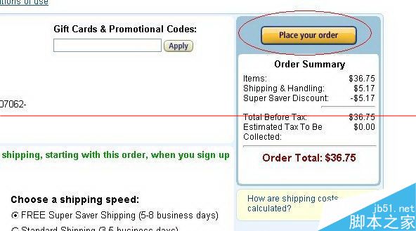 最后一次檢查收貨地址、購買商品、金額是否正確,點擊”Place your order”按鈕確認下單: