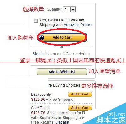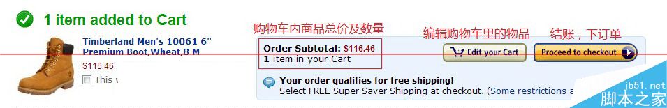 確定所選商品的型號/款式/顏色/數量等屬性,點擊“Add to Cart”將商品加入購物車。