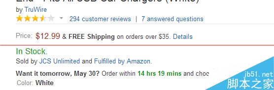 綠色的“In Stock”表示目前有現貨。Amazon不止自營商品,也有類似“店中店”的概念。“Ships from and sold by”后面如果跟的是“Amazon”或“Amazon”打頭的文字,即表示該商品是Amazon自己銷售的產品,是初次海外購的首選。第三方商家經營的商品,可能收取運費,發貨時間與美國亞馬遜規則不同。