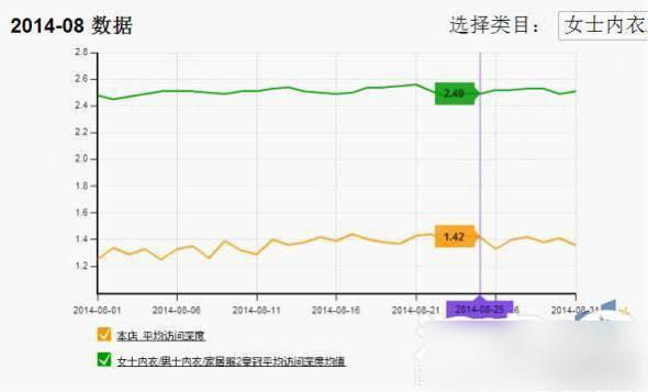 從這個數據可以看到自己店鋪與行業均值的對比情況,這里我截取了訪問深度的對比,如果你的訪問深度低于行業,那么就該檢查一下關聯營銷或者店鋪活動有沒有做、做的效果如何了。
