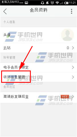 2)點擊自己的【資料】,選擇【收貨信息管理】。