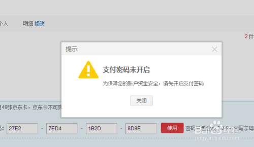在未設(shè)定支付密碼時(shí),在綁定京東E卡時(shí)會(huì)有如下提示