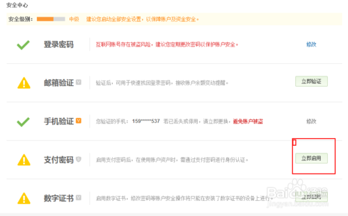 在下圖中可以看到”立即啟用“支付密碼選項(xiàng)