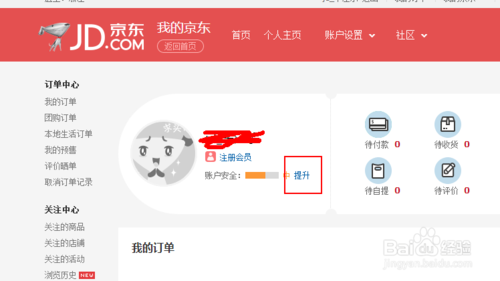 進(jìn)入到自己的京東主頁(yè),在下圖中找到“提升”按鈕。