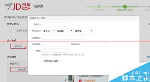 7、我們點擊去結(jié)算按鈕,出現(xiàn)需要我們確認收貨地址與付款的信息,輸入完成即可。