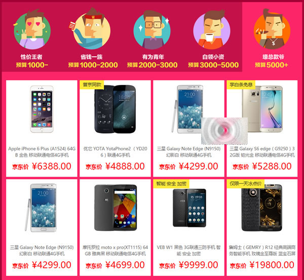 5、壕總款爺,預算5000+:iPhone6 Plus、優它YotaPhone 2、三星Note Edge、三星S6 edge、Moto X Pro、VEB W1、詹姆士R12等土豪機型!立刻參與