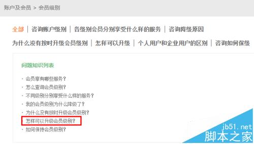 4、接著,在問題知識列表中,點擊“怎樣可以升級會員級別?”。