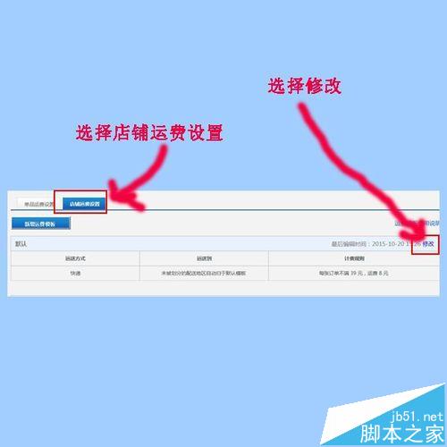 5、選擇“店鋪運費設(shè)置”,點擊“修改”;