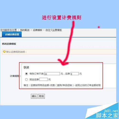 6、設(shè)置“計費規(guī)則”,在此輸入不滿多少元收取運費(),就設(shè)置完成了!