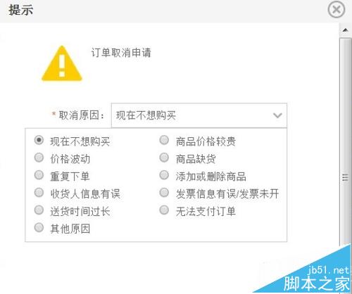 2、接著會彈出對話框,你需要輸入取消訂單的原因,比如“現在不想買了、商品價格較貴、價格波動等等”,然后點擊確定取消即可。