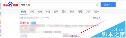 1、打開瀏覽器,百度搜索百度外賣,進入商戶中心。