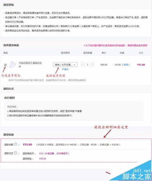 2、閱讀退貨政策,根據(jù)您的實(shí)際情況選擇退貨的原因,點(diǎn)擊“提交退貨申請(qǐng)”