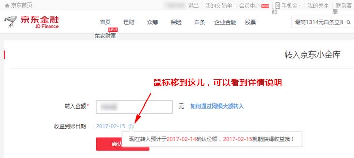 4、填入轉入金額,再點擊“確認轉入”按鈕。