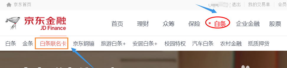 2、然后在跳轉(zhuǎn)到的京東進(jìn)入界面依次點(diǎn)擊"白條"-"白條聯(lián)名卡",如下圖;