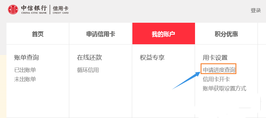 3、然后在頁(yè)面右側(cè)的地方會(huì)看到"查看辦卡進(jìn)度"選項(xiàng),點(diǎn)擊以后同用可以理解目前卡片進(jìn)展情況;