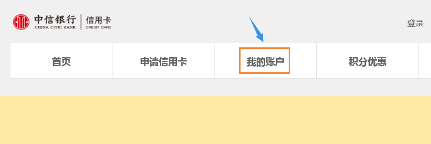 1、比如我們是辦理的中信信用卡,那么就百度該信用卡的官方網(wǎng)站,如圖,進(jìn)入以后在首頁(yè)會(huì)看到"我的賬戶(hù)"選項(xiàng),如圖;