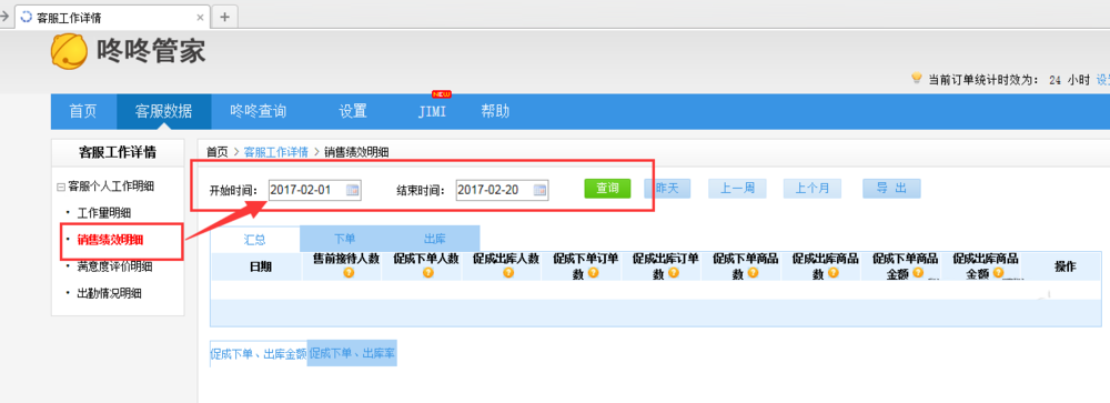 4、點銷售明細就會出現如圖這個界面了,這里查看所以業績的明細了。
