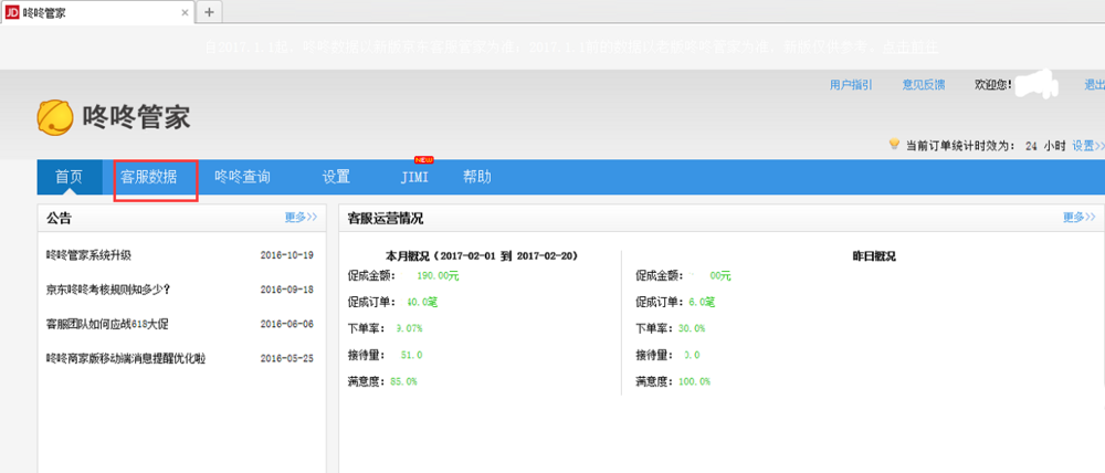 3、進入咚咚管家后就是這個頁面了然后點擊客服數據