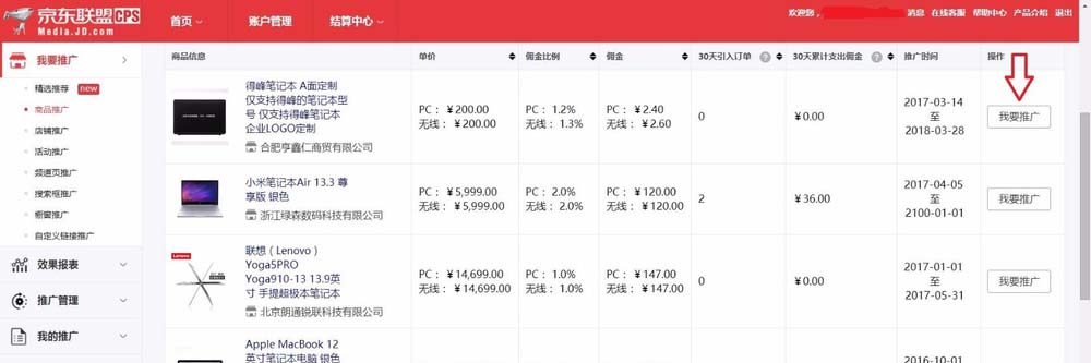 2、選擇自己想要推廣的商品,點擊箭頭所示“我要推廣”。