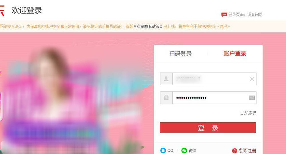 1、登錄京東賬戶。在百度搜索引擎里面輸入“京東官網(wǎng)”,在搜索結果中進入官網(wǎng),然后找到登錄頁面,輸入自己的賬戶名和密碼,點擊【登錄】。