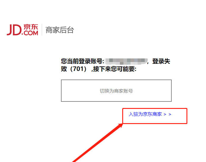 5、會提醒說需要商家賬號登錄,點(diǎn)擊下面的“入駐為京東商家”