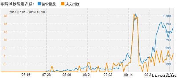 眼下馬上就是秋冬季節(jié),秋冬裝的高客單價(jià)對(duì)于淘寶賣家來說是不小的誘惑。冬裝比較暴利的就是羽絨服和皮草了,如果你有一定的實(shí)力,是完全可以往這個(gè)方面的操作的。比如我們可以看到 學(xué)院風(fēng)秋裝連衣裙這個(gè)相對(duì)較小的類目,逐漸有爆發(fā)的趨勢(shì)。