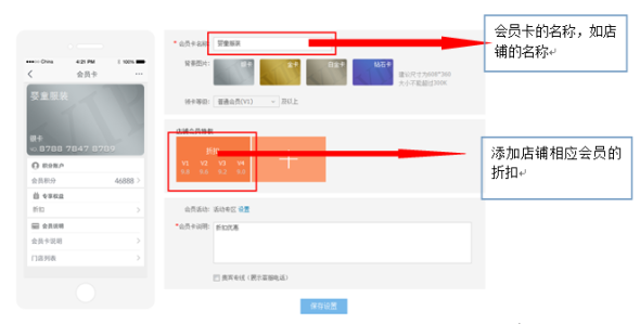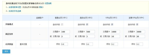 只要保存,就會生成相應的折扣,不需要在設會員卡的時候重新設置了,可以直接裝修手機店鋪了。