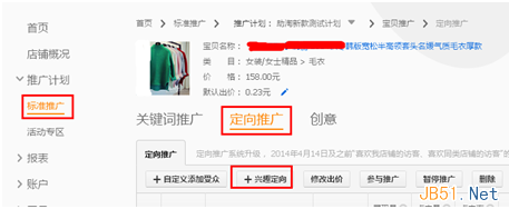 2.在一款寶貝的定向推廣模塊下找到興趣點定向子模塊。