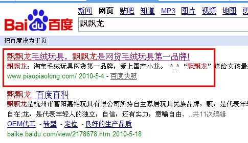 因為淘寶網屏蔽了百度的蜘蛛,所以也就留出了很多的流量給淘寶客們,這部分流量除了淘寶相關的關鍵字外,就是產品名稱的關鍵和網店品牌名的關鍵字,所以一些大品牌的,比如阿芙,飄飄龍,本身就有很多的客戶,很多客戶都是直接在百度找他們,你的博客在流量競爭中就非常具有優勢,博客進行了基本的SEO設置,具體SEO的方法可以參考之前分享的SEO五步走進行。阿芙的博客和飄飄龍的博客在百度的排名都是很高的,關鍵是這些流量轉化為客戶的轉化率也很高。