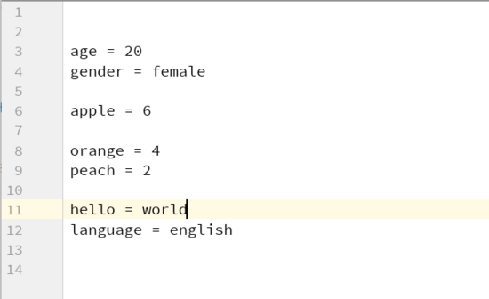 新增配置項:hello=world,位置在第11行