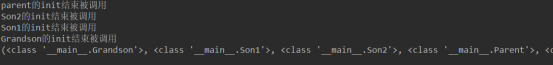class Parent(object): def __init__(self, name): self.name = name print('parent的init結(jié)束被調(diào)用')class Son1(Parent): def __init__(self, name, age): Parent.__init__(self, name) self.age = age print('Son1的init結(jié)束被調(diào)用')class Son2(Parent): def __init__(self, name, gender): Parent.__init__(self, name) self.gender = gender print('Son2的init結(jié)束被調(diào)用')class Grandson(Son1, Son2): def __init__(self, name, age, gender): Son1.__init__(self, name, age) # 單獨(dú)調(diào)用父類的初始化方法 Son2.__init__(self, name, gender) print('Grandson的init結(jié)束被調(diào)用')gs = Grandson('grandson', 12, '男')