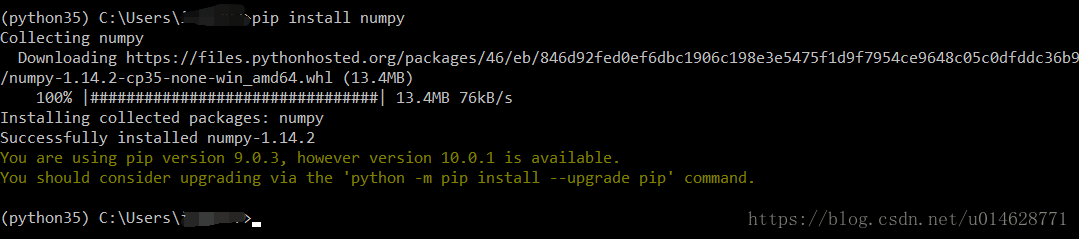 當然也可以用conda install numpy來安裝,但是會同時安裝很多相關的包,在此就不演示了。