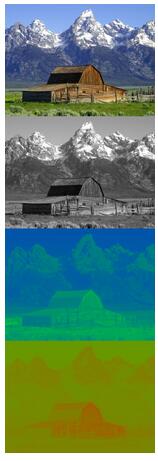 如下圖,一張從上到下分別為原圖、Y、U 和 V: