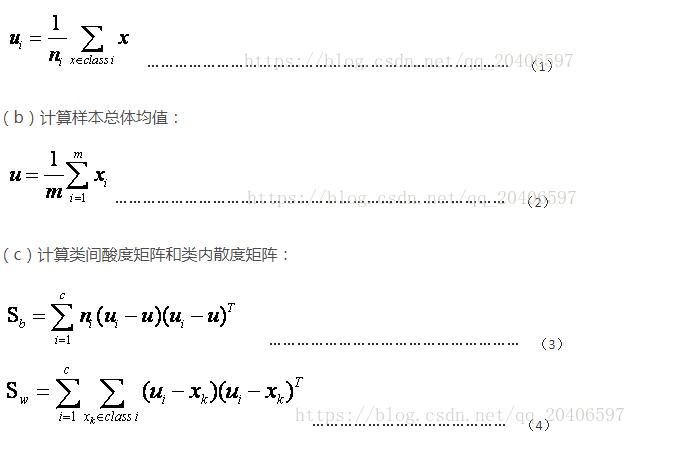 (d)LDA作為一個分類的算法,我們希望類內的聚合度高,即類內散度矩陣小,而類間散度矩陣大。這樣的分類效果才好。因此引入Fisher鑒別準則表達式: