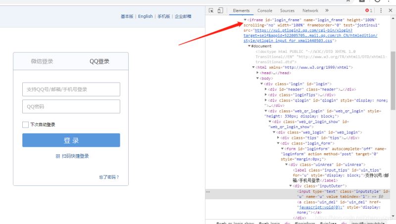 可以看到QQ賬號輸入框的id、name等屬性,都是可以直接拿來定位的好選擇。