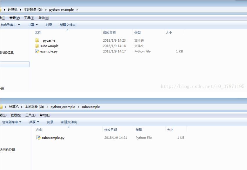 這是測試文件的結構,python_example主文件夾,下面有example.py和一個subexample子文件夾,我要分別調用example.py和subexample.py。