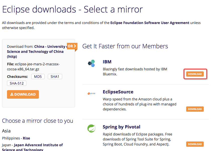 4.選擇一個鏡像站點下載到Mac的桌面:
