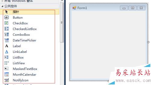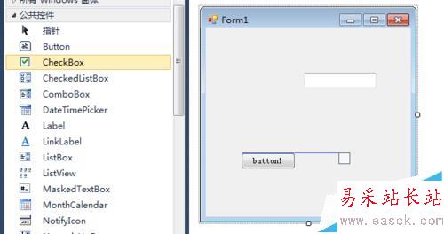 5、有了窗體,我們就可以在窗體上放置各種各樣的控件。左邊的工具箱中有各式各樣的控件,按鈕、文本框、復(fù)選框等。用鼠標(biāo)按住工具箱中的某個(gè)控件,把它拖放到窗體上,便可以往窗體內(nèi)添加控件。也可以直接雙擊工具箱內(nèi)的某個(gè)控件,將控件添加到窗體上。